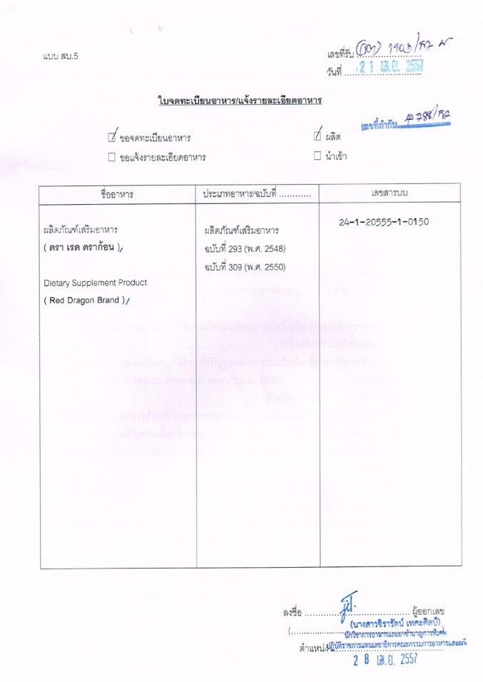 เติมพลังด้วยผลิตภัณฑ์เสริมอาหาร Reddragonซึ่งประกอบไปด้วยส่วนประกอบที่มีประโยชน์อาทิเช่น