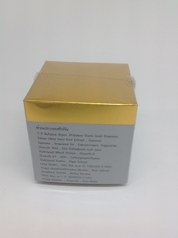 1-3 Butylene Glycol, Propylene Glycol and Dioscorea Villosa (Wild Yam) Root Extract, Glycerine Squalane, Grapeseed Oil, Caprylic/eapric Triglyceride Stearate Acid, Aloe Barbodensis Leaf Juice Hydrolyzed Wheat Protien, Steareth-2, Steareth-21, KOH, Cartoxypolymethylene Hydrolyzed Elastin, Algae Extract, Cetyl Alcohol, water